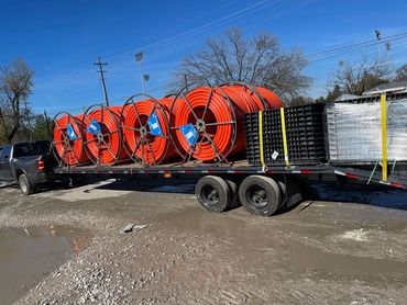We are able to do horizontal drilling up to 20” conduit, mainline cable plowing, access points (such as hand holes, flowerpots, and pedestals), restoration and cleanup of job sites, general excavation needs, hydro excavation, pipe rodding, cable pulling, HDPE pipe fusion, fiber splicing, and installation of breakaways on HDPE.